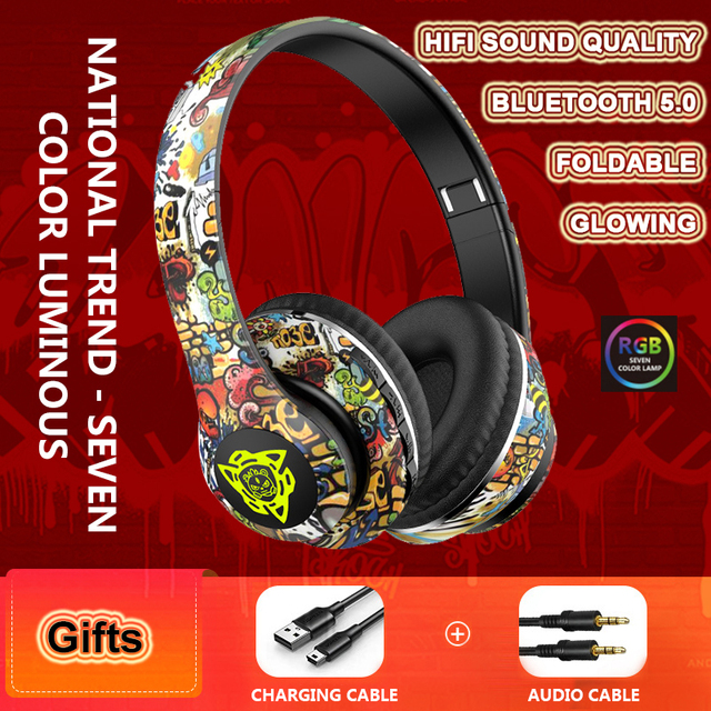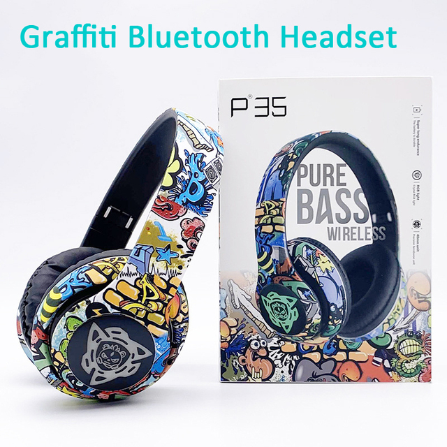 Share this product Shipped from abroad Graffiti Headphones Bluetooth Headsets Wireless Earphones Stereo Foldable Sport Earphone In Mic Headset