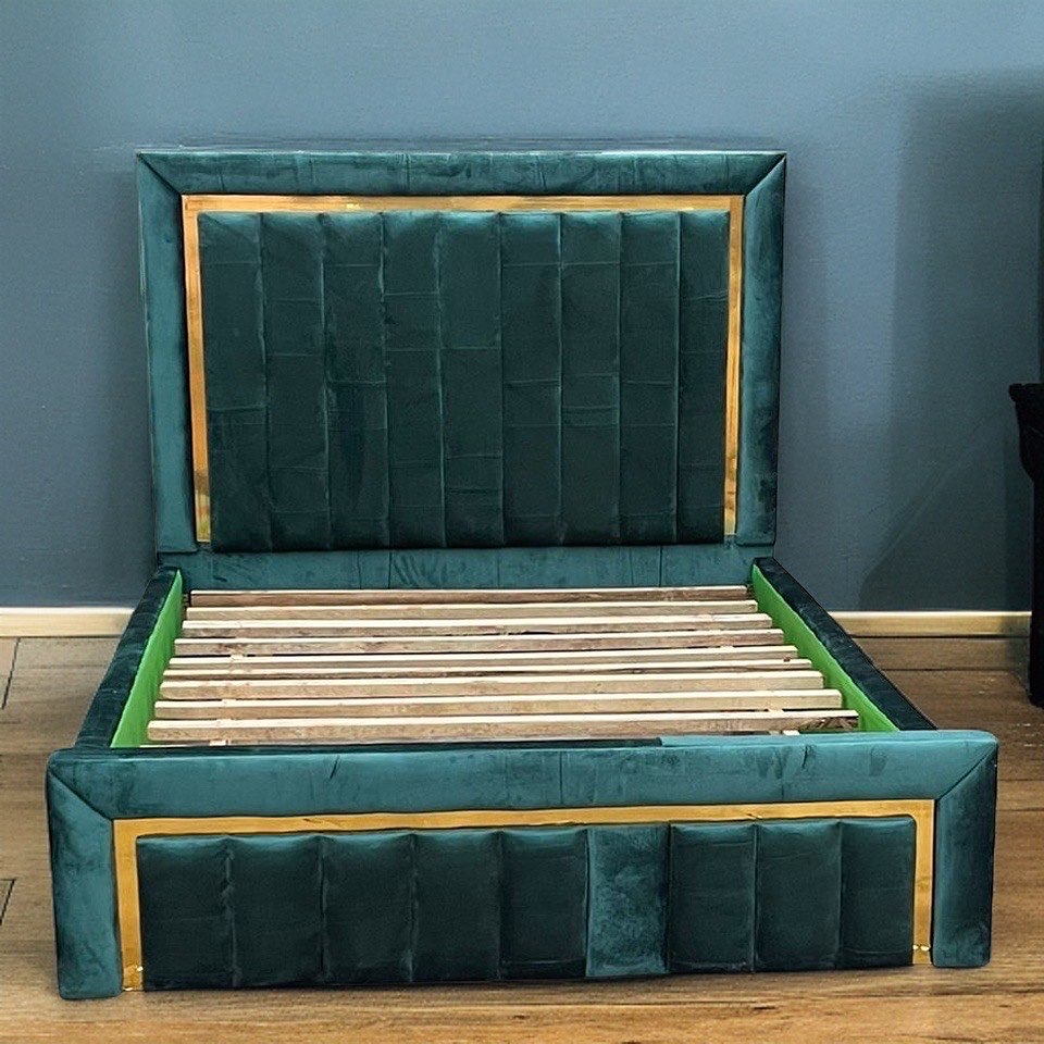 Strong Wood Double Bed Frame suede Material Gold design